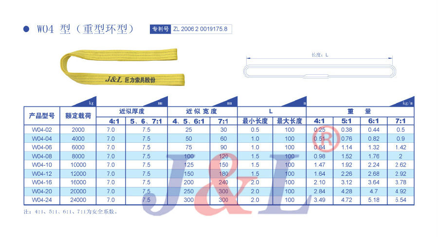 合成纖維吊裝帶吊裝帶制造總廠是世界最大吊裝帶制造基地,年產量達20000t以上,擁有世界上最先進的制造設備千余臺套,包括瑞士繆勒織機、德國染整機、日本全自動縫紉機等。目前可生產額定載荷0.5t-2000t,長度0.5m-100m不同規格型號的吊裝帶產品。可根據客戶需求制作4、5、6、7倍安全系數的吊裝帶。